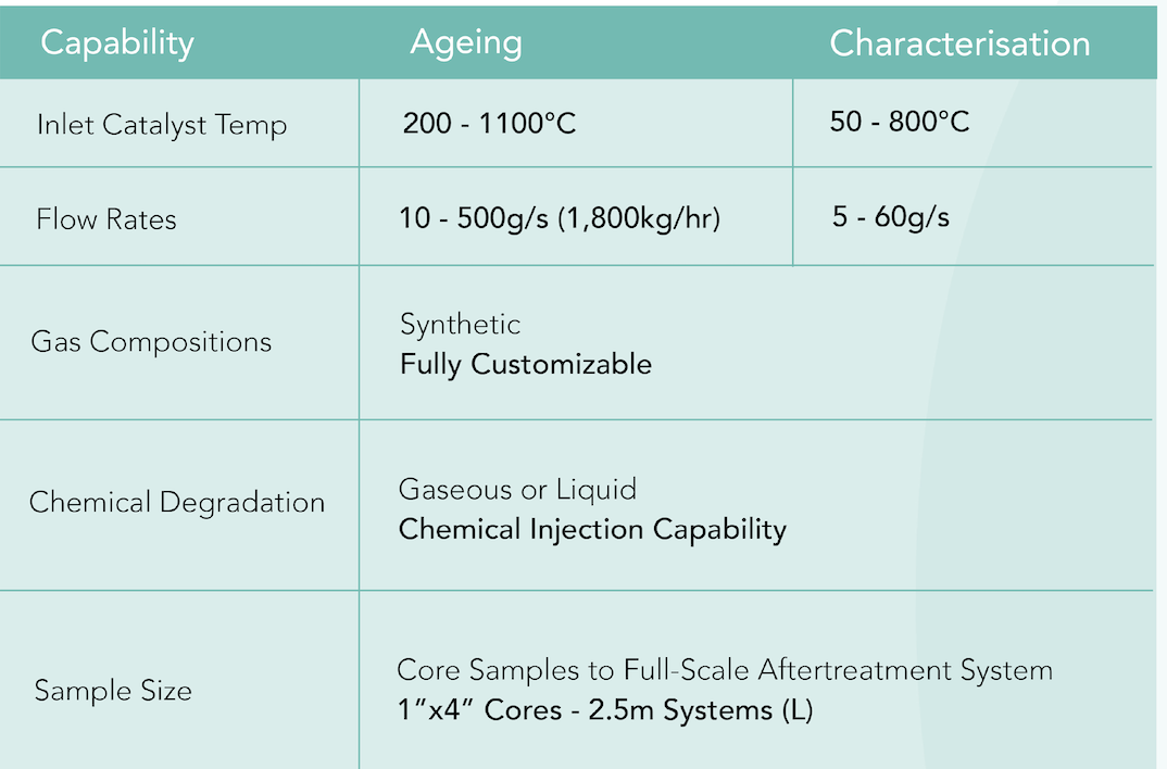 OMEGA enables both thermal and chemical degradation of aftertreatment components, as well as other non-automotive catalyst applications. Chemical degradation is delivered through a bespoke poisoning setup that can be used with a range of compounds such as sulphur and phosphorus.